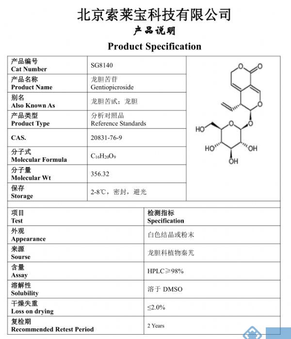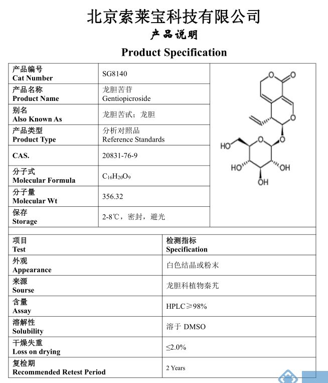 Gentiopicroside;龙胆苦苷-常用生化试剂-试剂-生物在线